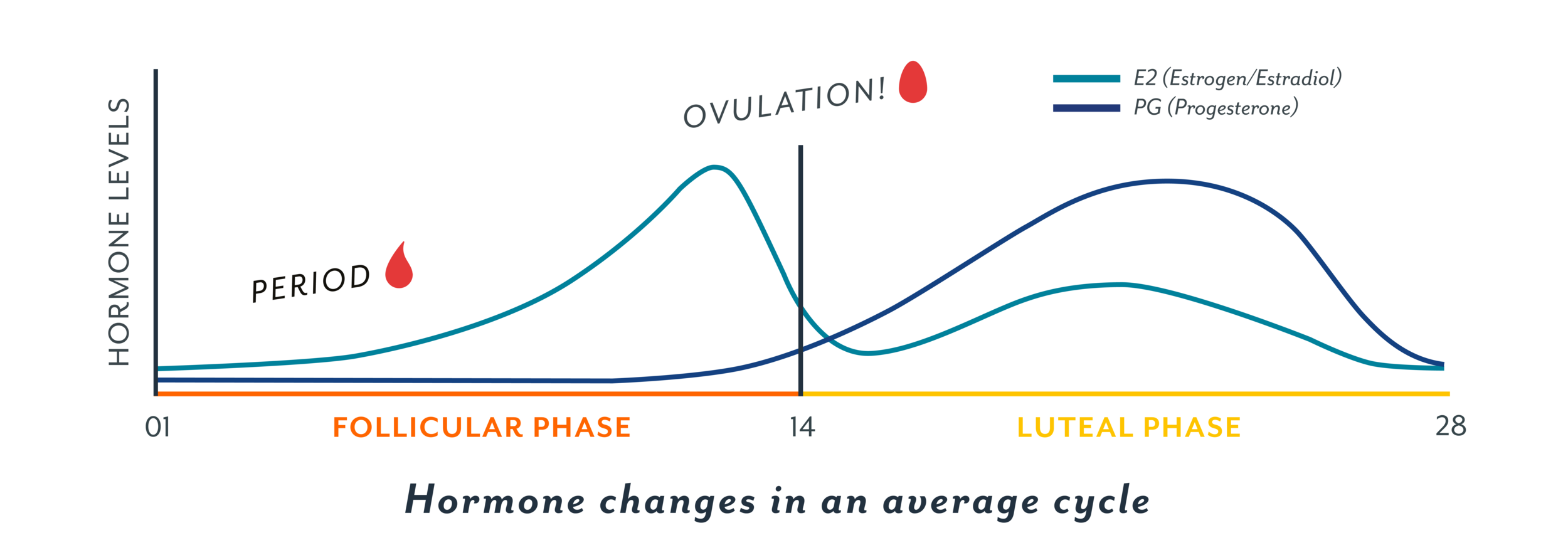 The hormones are fluctuating in their own cycles. You can google lots of graphs. Think of them as musical melodies that go up and down in their own loops.