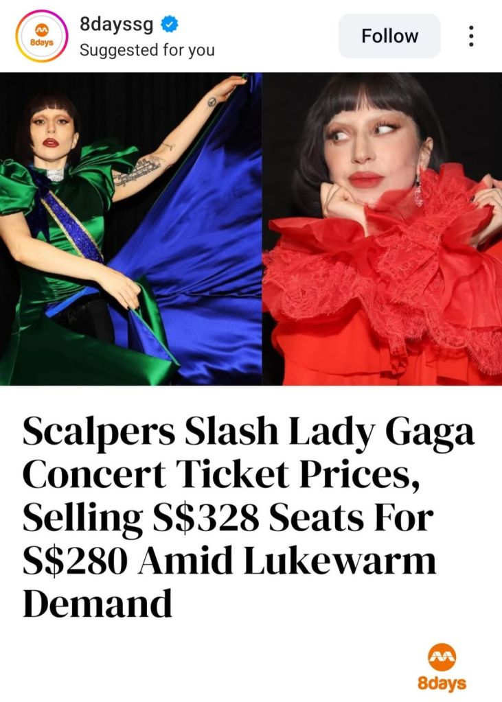 It’s a global recession. People aren’t gonna buy Lady Gaga tickets from scalpers when they can watch YOUTUBE BLURRY FAN CAMS FOR FREE.