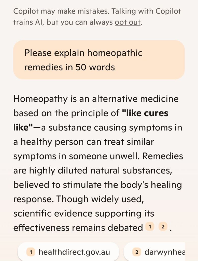Homeopaths would disagree! They would say there’s a lot of scientific evidence for what they’ve been doing!