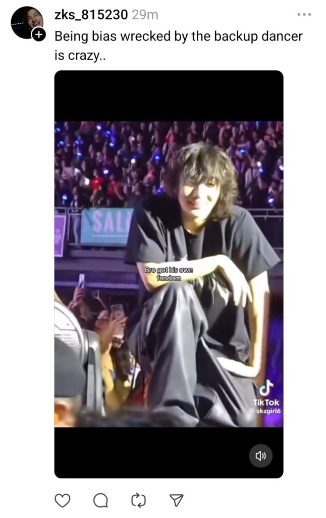 I think he has potential… he’s not my type. But I relate everything to the Eras Tour and eventually swifties started following Eras Tour backup dancers too…