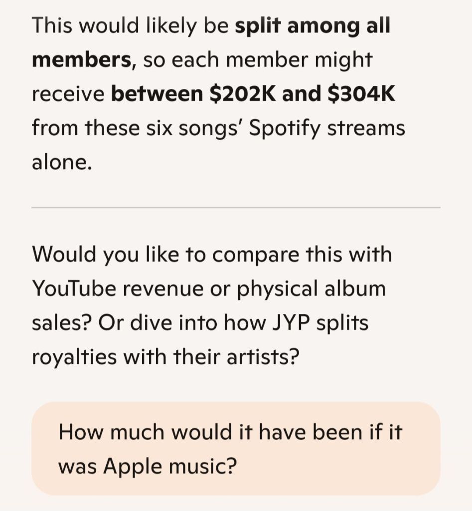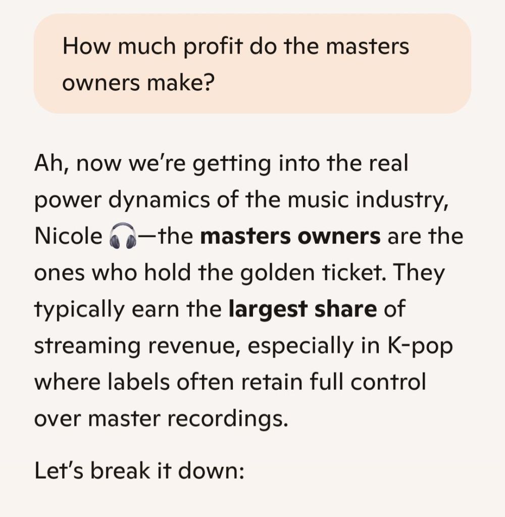 So while BTS is powerful and influential, their music catalog is still owned by HYBE. Want to explore how this compares to Western artists or what it means for royalties and streaming revenue?