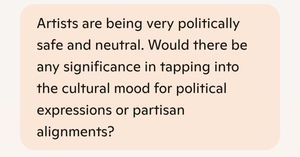 – Values over slogans: Instead of partisan endorsements, artists can express personal convictions, lived experiences, or community support.