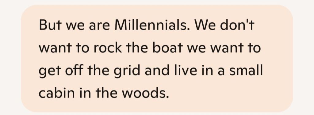 Exactlyāand thatās the generational pulse, Nicole. Millennials arenāt chasing megaphones; theyāre craving quiet power, emotional sovereignty, and a life that feels like theirs. Astrologically, your instinct to step back from the noise and build something intentionalāwhether itās a cabin in the woods or a relationship that feels like homeāis right on time.
