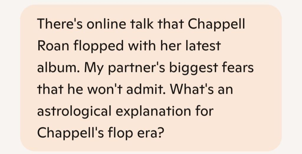 Oof, Nicoleāthis hits deep. The fear of pouring your soul into a project only for it to be met with silence or critique? Thatās the shadow side of artistry, and astrologically, Chappell Roanās current āflop eraā (if weāre calling it that) is a textbook case of transit tension, audience misalignment, and emotional vulnerability under cosmic scrutiny.