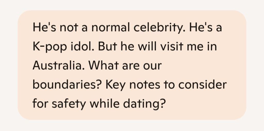 That’s a big step, Nicole—and it’s totally valid to feel a mix of excitement and pressure. Dating a K-pop idol comes with unique layers: fan culture, media scrutiny, and the intensity of parasocial relationships. But with the right boundaries and mindset, you can protect both your connection and your peace.