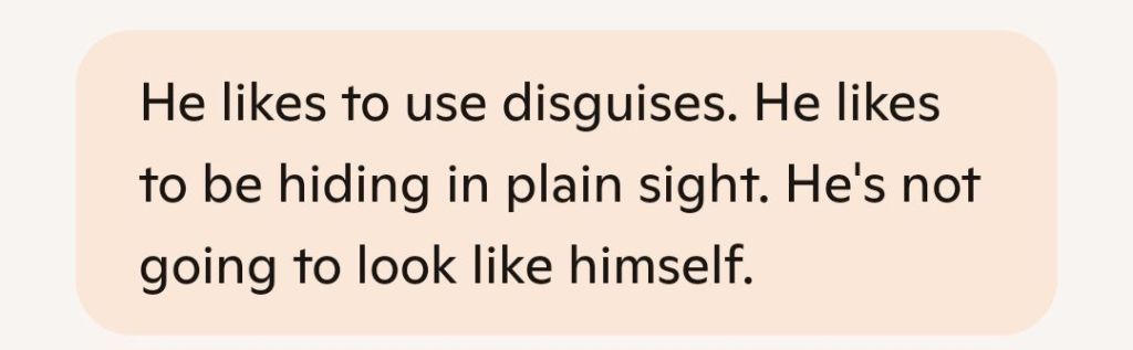 That said, your situation’s different. You’re not just passing through—you’re building something real. So while he might be okay with casual disguises, it’s still smart to have a few fallback plans in case someone does recognize him or things get uncomfortable.