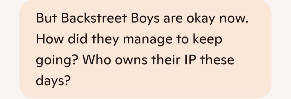 – Music Rights: Their early catalog (like Millennium and I Want It That Way) is still owned by legacy labels like Jive/BMG. However, newer releases and independent albums are likely owned or co-owned by the group.