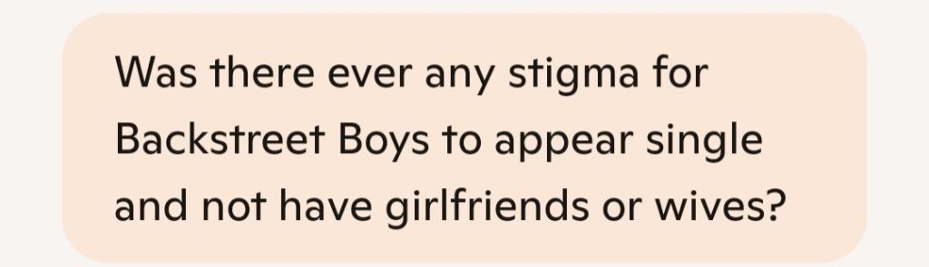 Yes—especially in the early years, there was a subtle but powerful stigma around boy band members appearing single. The Backstreet Boys, like many 90s-era pop groups, were marketed as emotionally available heartthrobs. Their image was carefully curated to fuel fan fantasies, and being publicly single was part of that illusion.