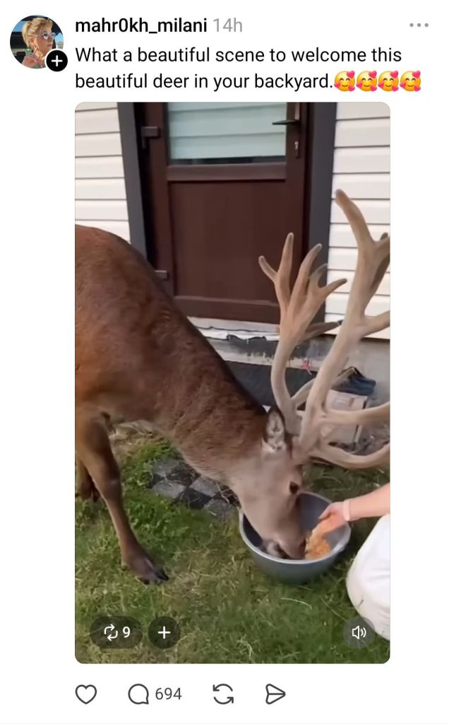 There’s a deer in this lady’s backyard and she gave it food like a stray cat…