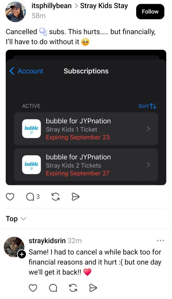 I know but I’m the same. I used to be subscribed to 7 stray kids, now I’ve budgeted down to 3 of them.