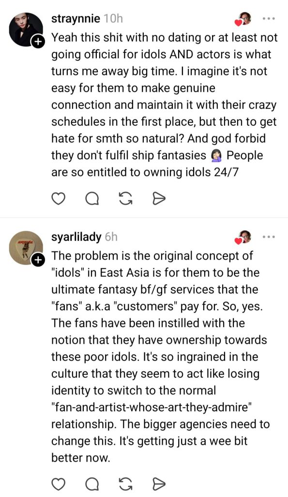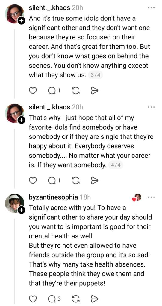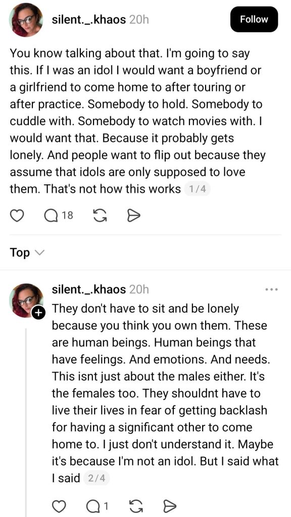 Boxing K-pop fandoms into a stereotype of never allowing their “idols” to date is also an assumption… and these voices are showing — actually — that’s not even true.