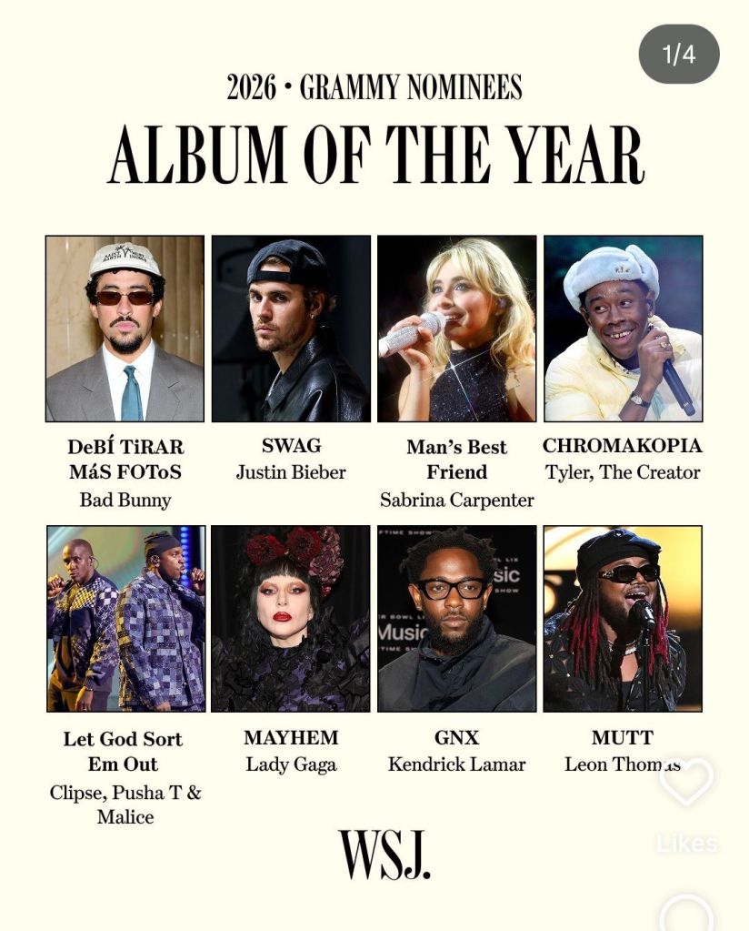The only MUSIC that I know from all these nomiees is Katseye’s Gabriella.
