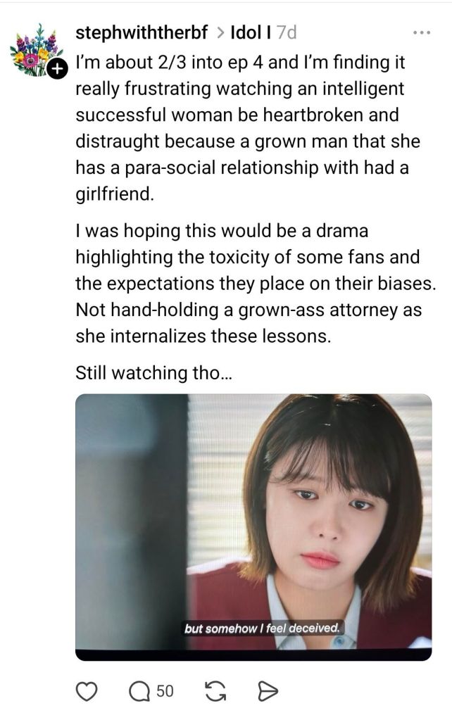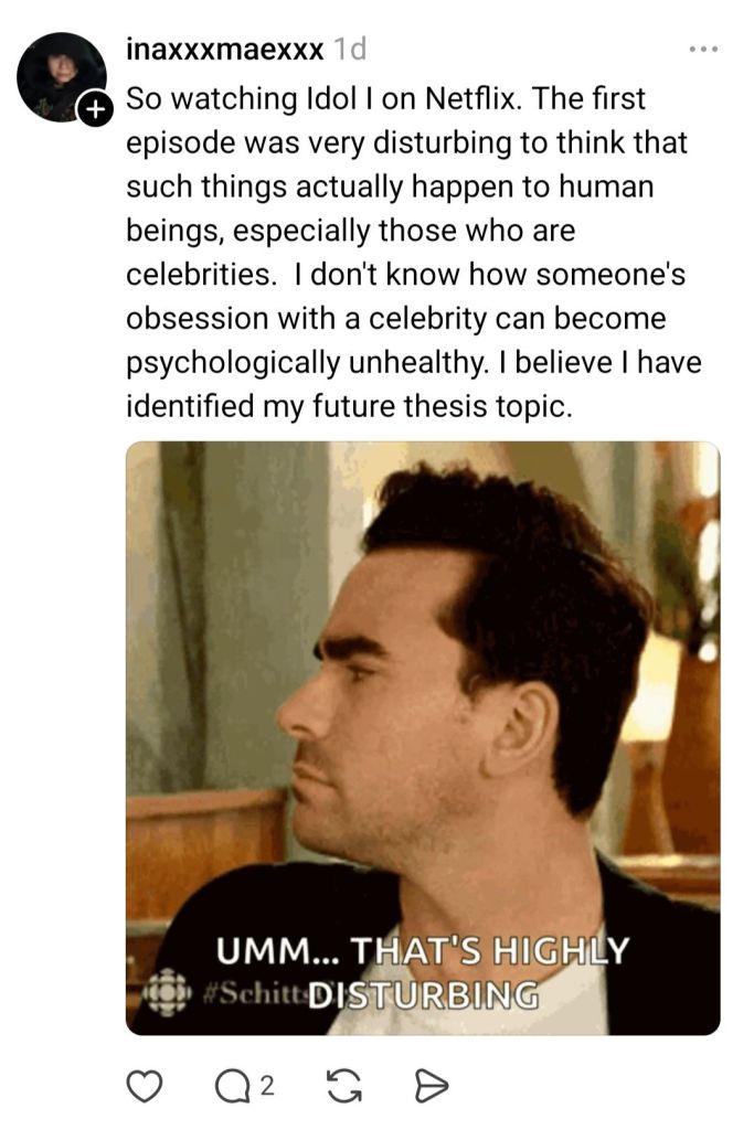 U can literally blur it as a spoiler feature on threads. It’s not fair for the people who haven’t seen it yet or are waiting to binge.